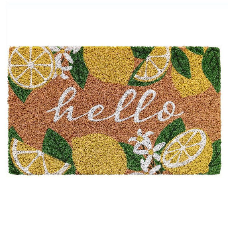 National Brand 18"x30" Boxwood Hello Lemons Coir Doormat Natural/Yellow