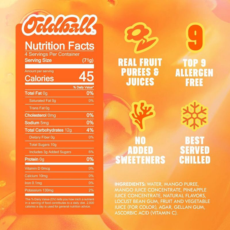 Jiggly fruit snack? We know what that's about. Meet Oddball – a spoonable jelly snack made with real fruit and a signature jiggle. Oddball's Mango Jiggly Fruit Snack is made from real fruit puree and …