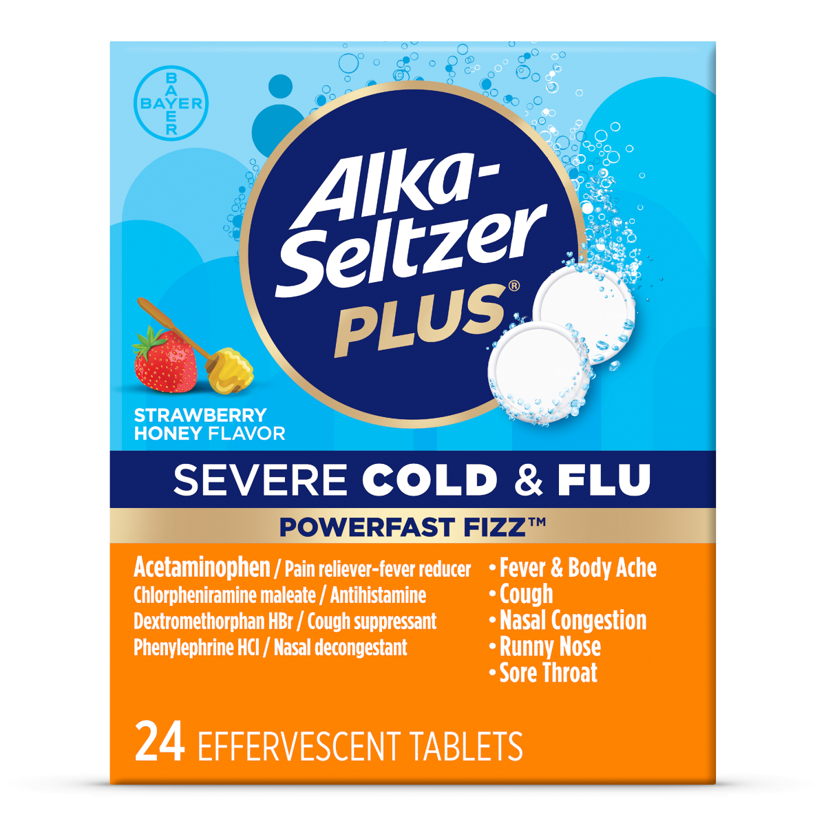Alka-Seltzer Plus Severe Powerfast Fizz, Cold & Flu Medicine, Strawberry Honey effervescent tablets
