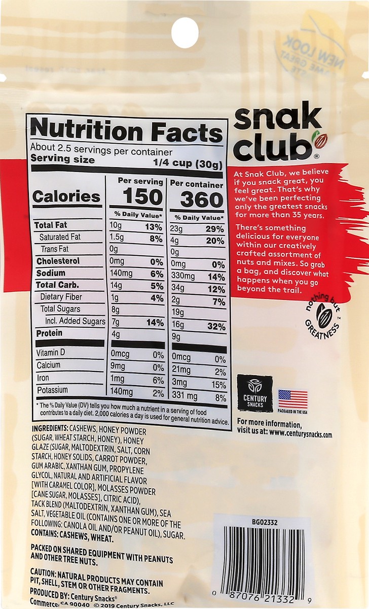 Snak Club Honey Cashews 2.5oz