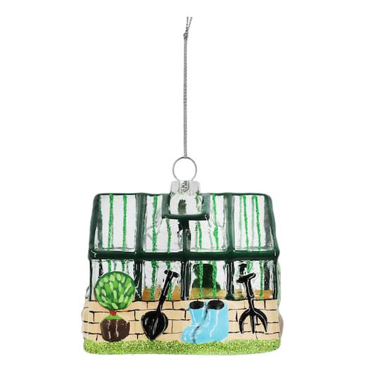Buy the 3.5" Greenhouse Glass Ornament by Ashland at Michaels. Featuring a greenhouse shape complete with yard tools, this piece will be right at home hanging from your tree or mantel this Christmas s…