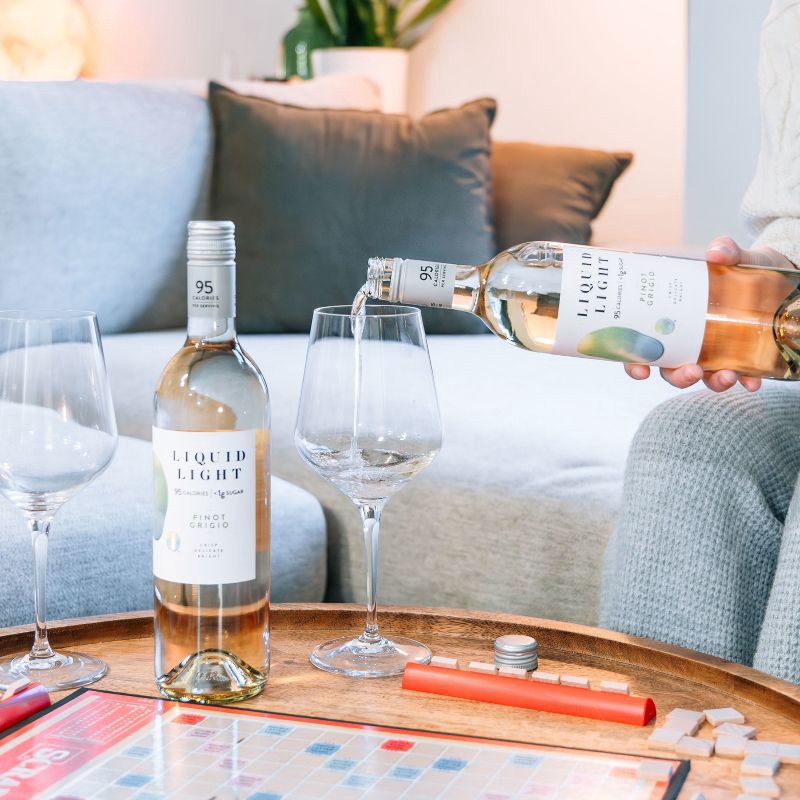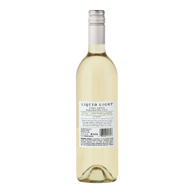 - One 750 mL bottle of Liquid Light Pinot Grigio White Wine, 12.5% ABV