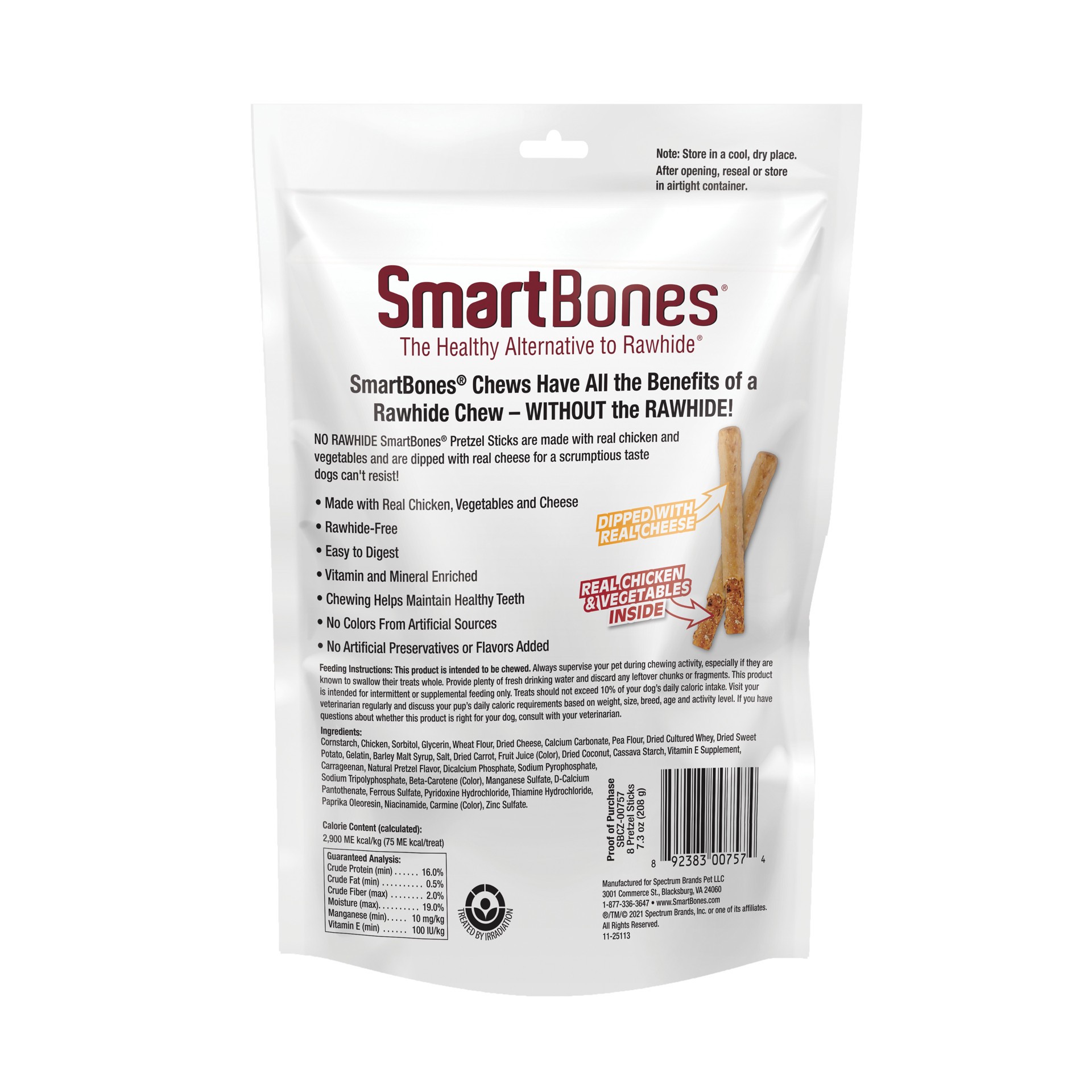SmartBones chews have all the benefits of a rawhide chew….without the rawhide! No-rawhide SmartBones chews are made with real chicken and wholesome vegetables for a scrumptious taste dogs can't resist…
