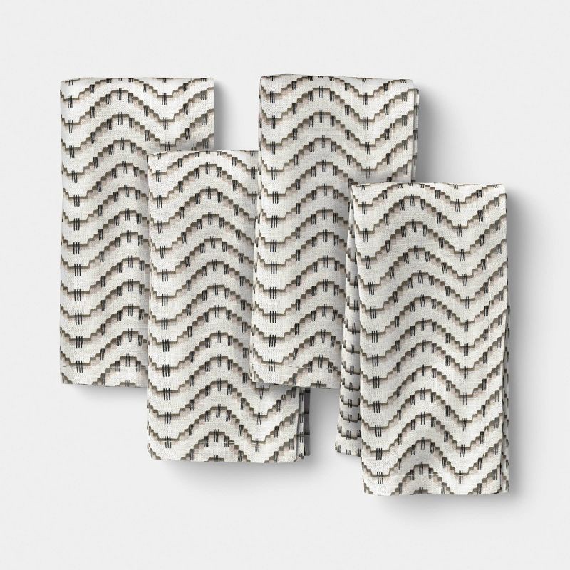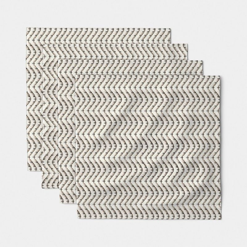Add a touch of elegance to your dining setup with these 4-Pack Wave Cotton Napkins from Threshold™. Woven from 100% cotton, these napkins feature a wave pattern in black and cream hues. Easy to pair w…