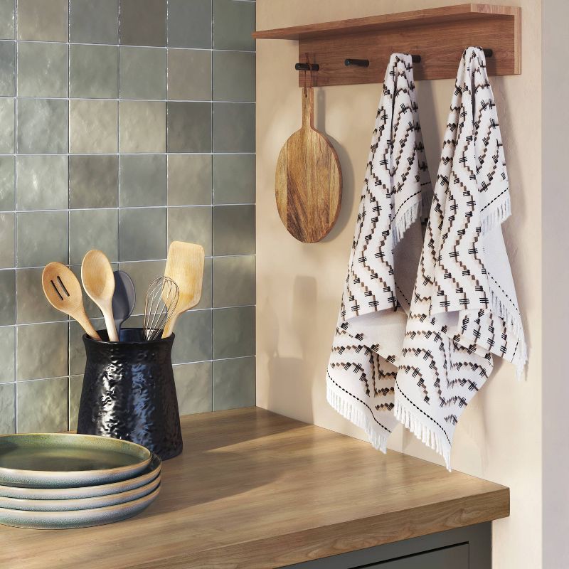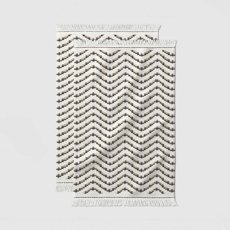2pk Kitchen Towels Black/Cream Wave - Threshold™