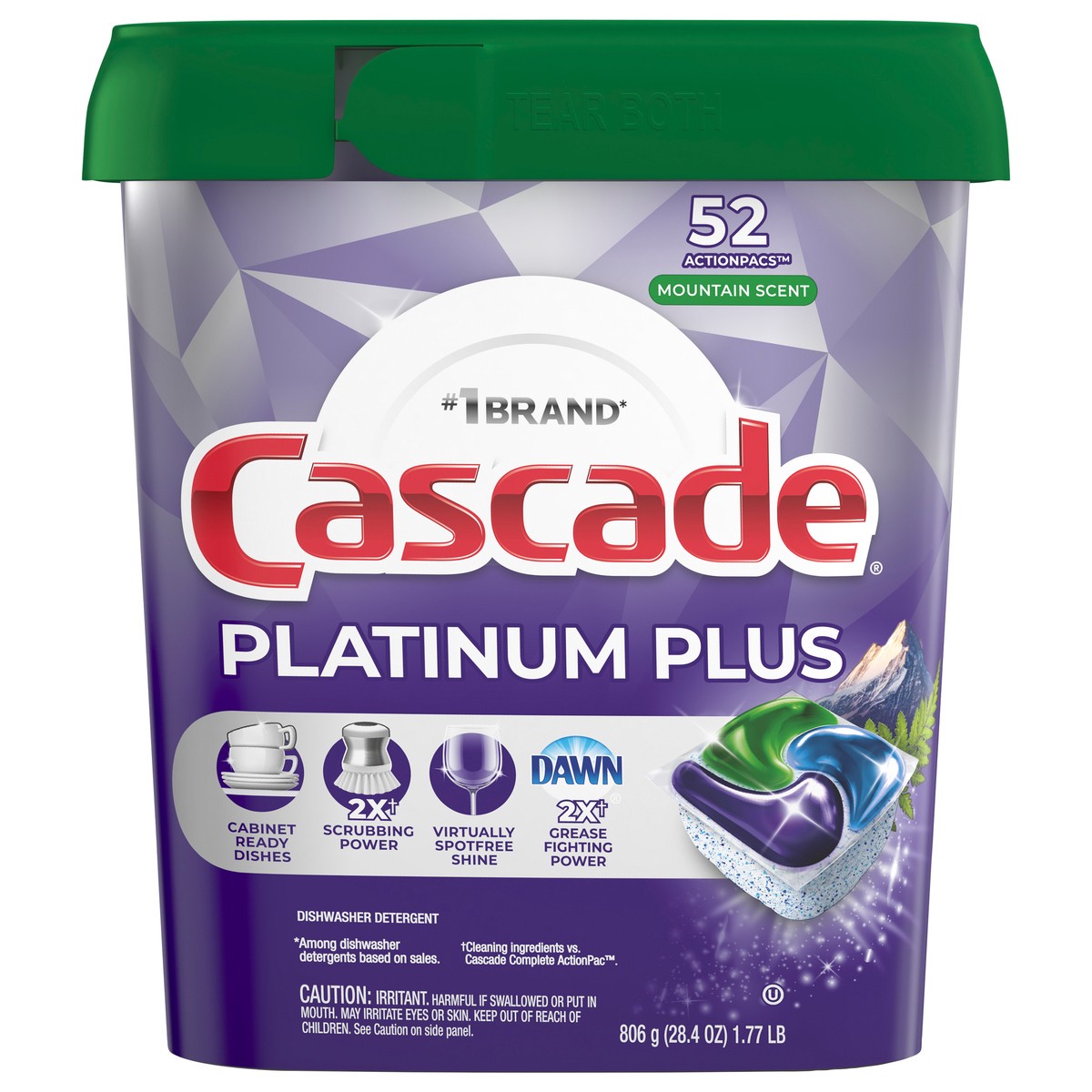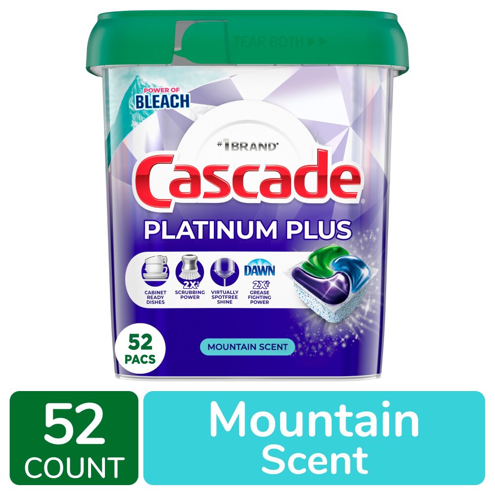 Cascade Platinum Plus ActionPacs Dishwasher Detergent Pods, Mountain, 52 Count