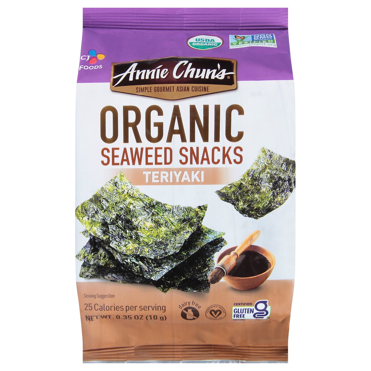 Organic Dried Seaweed, Organic Sunflower Oil, Organic Teriyaki Seasoning (Organic Cane Sugar, Organic Tamari Soy Sauce [Organic Soybeans, Salt], Organic Maltodextrin, Salt, Organic Spices, Organic Yea…