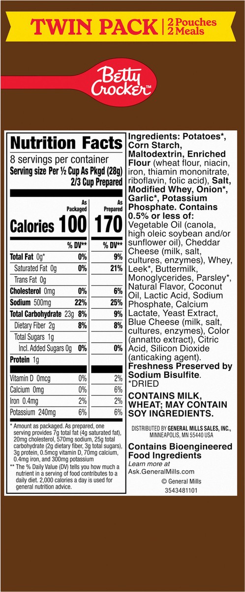Betty Crocker Scalloped Casserole Potatoes, Made With Real Cheese, Twin Pack, 8 oz Box