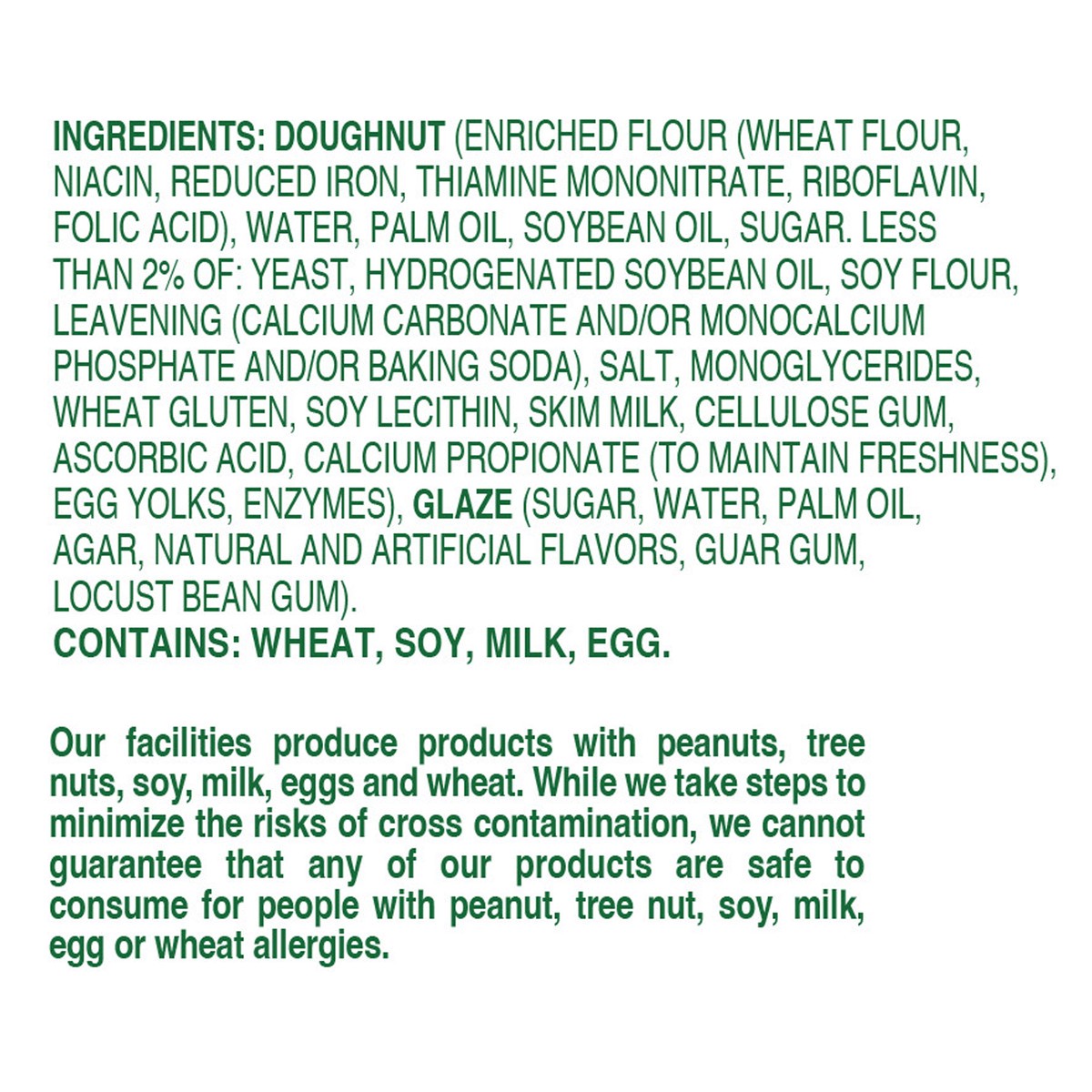 Doughnut (Enriched Flour (Wheat Flour, Niacin, Reduced Iron, Thiamine Mononitrate, Riboflavin, Folic Acid), Water, Palm Oil, Soybean Oil, Sugar. Less than 2% of: Yeast, Hydrogenated Soybean Oil, Soy F…