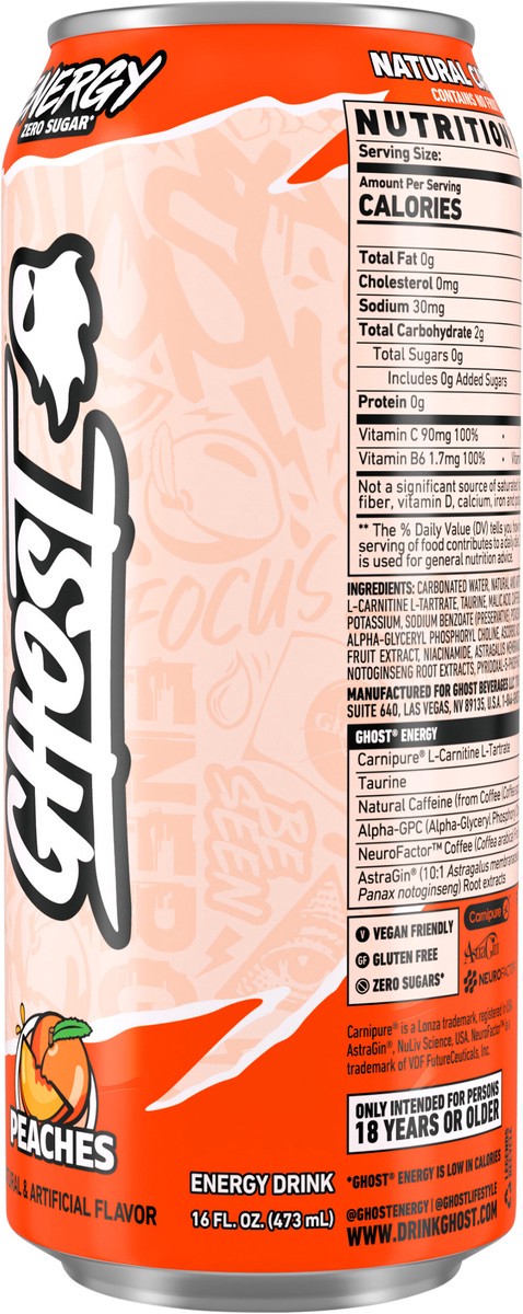 Ghost Zero Sugar Energy Drink, Peaches, 16 fl oz can