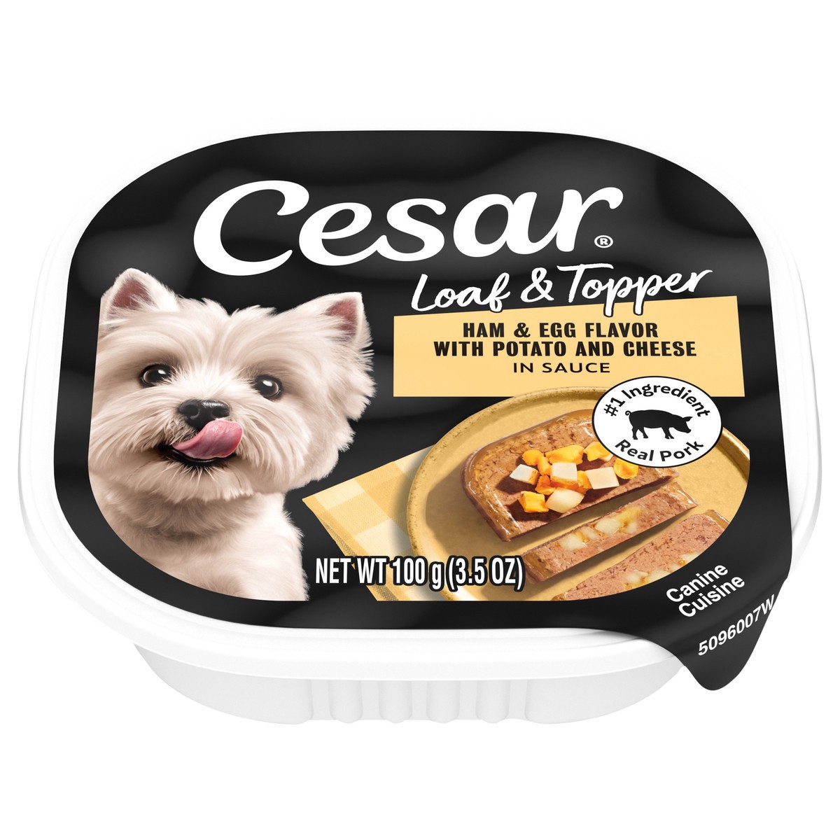 Cesar Loaf & Topper Ham & Egg Flavor with Potato and Cheese in Sauce Canine Cuisine 3.5 oz
