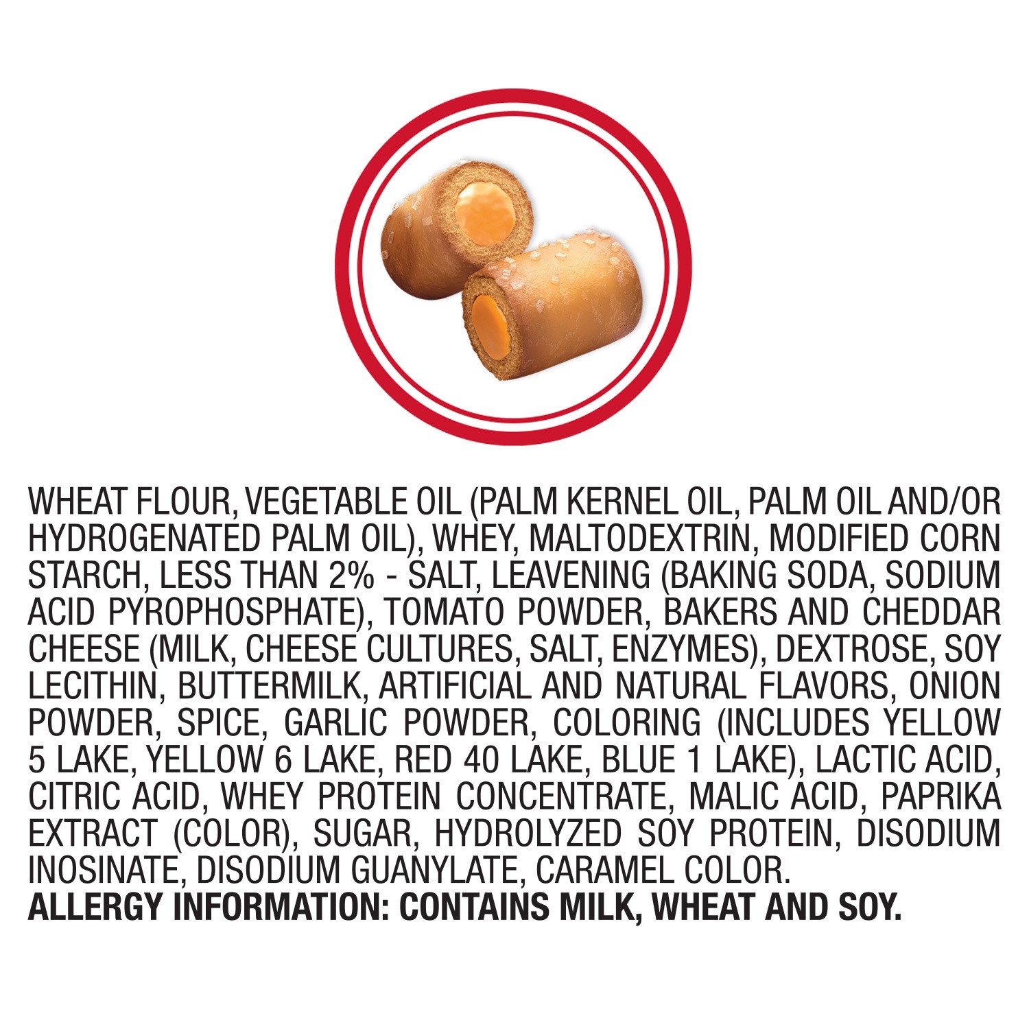 WHEAT FLOUR, PALM OIL, DAIRY PRODUCT SOLIDS, MALTODEXTRIN, MODIFIED CORN STARCH; LESS THAN 2% OF: SALT, TOMATO POWDER, LEAVENING (BAKING SODA, SODIUM ACID PYROPHOSPHATE), BAKERS AND CHEDDAR CHEESE BLE…