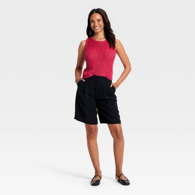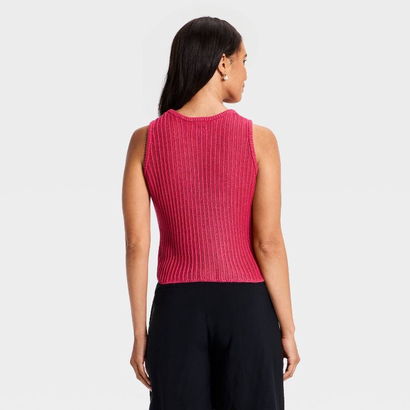 Brighten up your casual wardrobe with this Sleeveless Crewneck Drop-Needle Pullover Sweater Tank from A New Day™. Made of cotton-viscose blend fabric, this tank top keeps you moving through the day in…