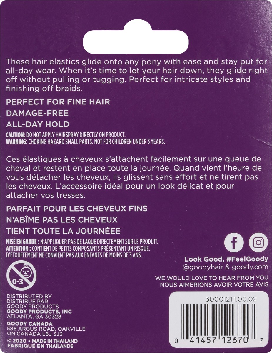 Damage-free hold. These hair elastics glide onto any pony with ease and stay put for all-day wear. When it's time to let your hair down, they glide right off without pulling or tugging. Perfect for in…