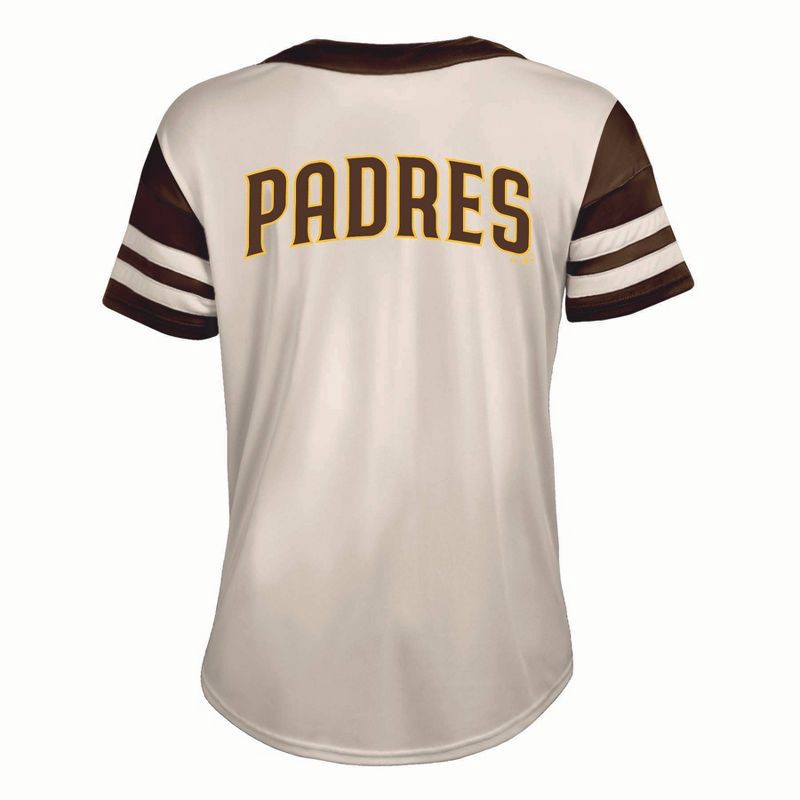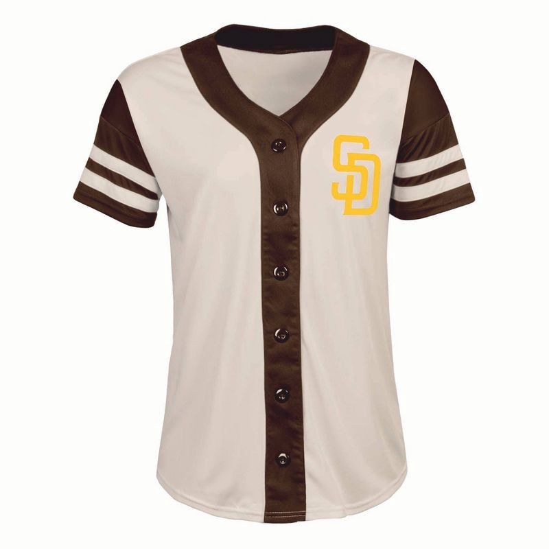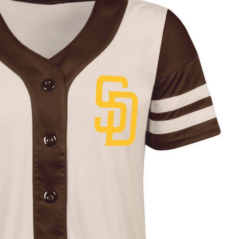 Game-day style just got a fun upgrade with this relaxed fit fashion short sleeve button-up tee. Jersey-inspired, the sleeve taping creates an athletic look, while the off-white ground and team color t…