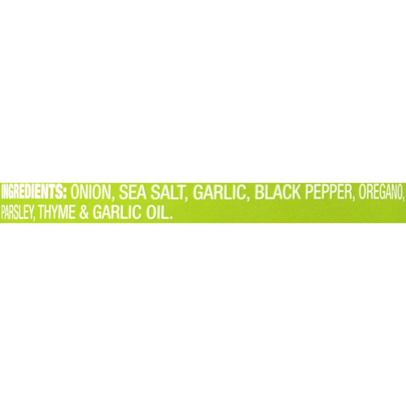 Onion Sea Salt, Garlic, Black Pepper, Oregano, Parsley, Thyme & Garlic Oil.