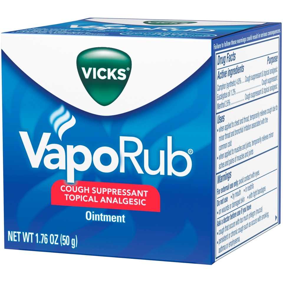 Vicks VapoRub, Original, Cough Suppressant, Topical Chest Rub & Analgesic Ointment, Medicated Vicks Vapors, Relief from Cough Due to Cold, Aches & Pains, 1.76oz