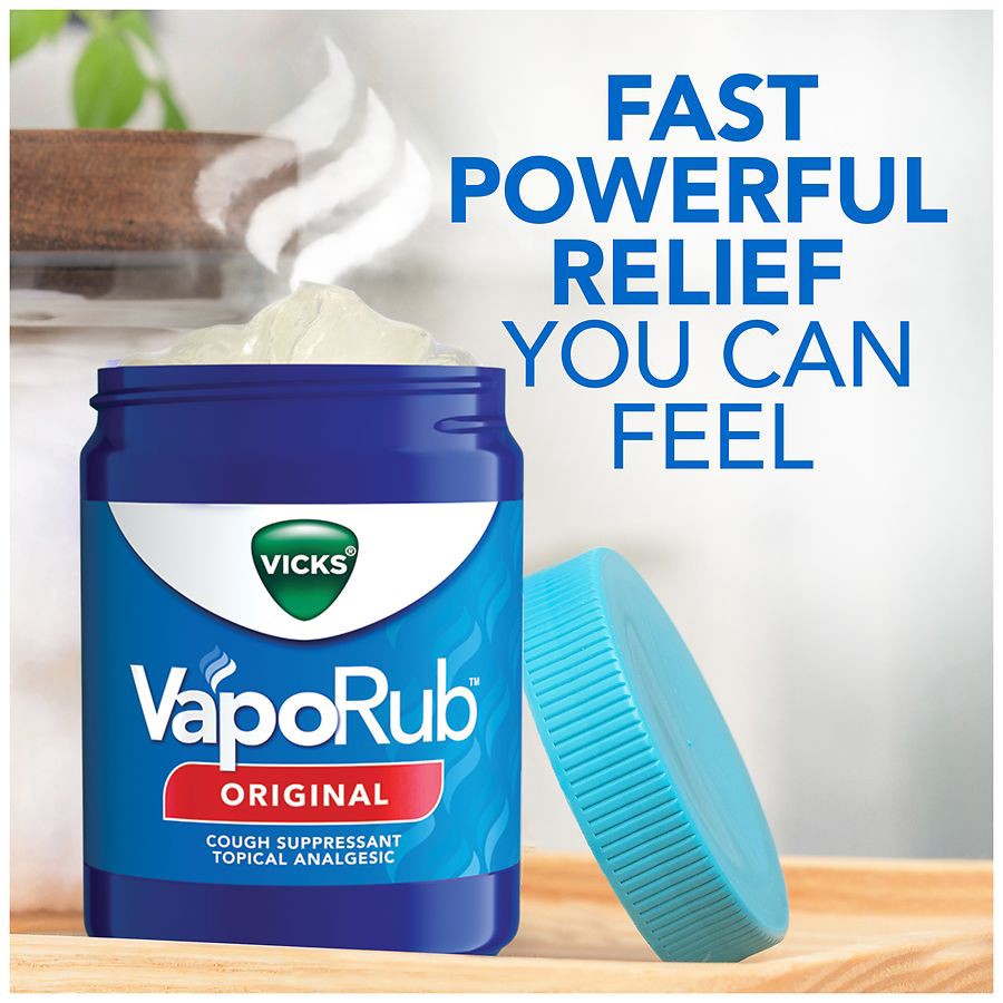 Vicks VapoRub, Original, Cough Suppressant, Topical Chest Rub & Analgesic Ointment, Medicated Vicks Vapors, Relief from Cough Due to Cold, Aches & Pains, 1.76oz