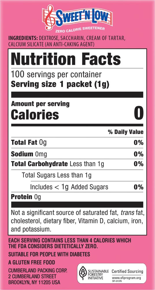 Each packet is about as sweet as 2 tsp. of sugar. Do you believe that sweeter is better? Then you'll love Sweet'N Low zero calories sweetener, America's favorite little pink packet. Sweet'N Low dissol…
