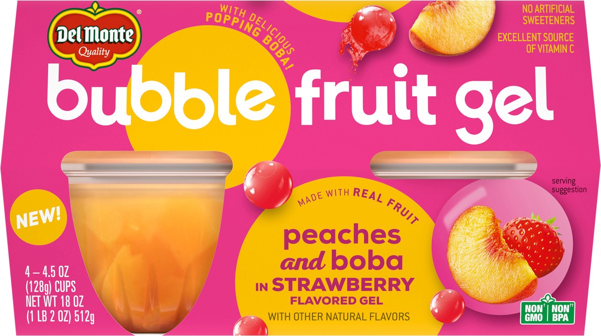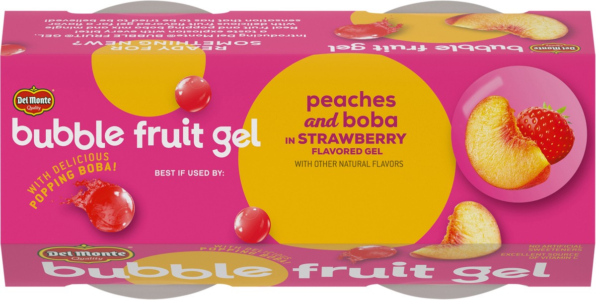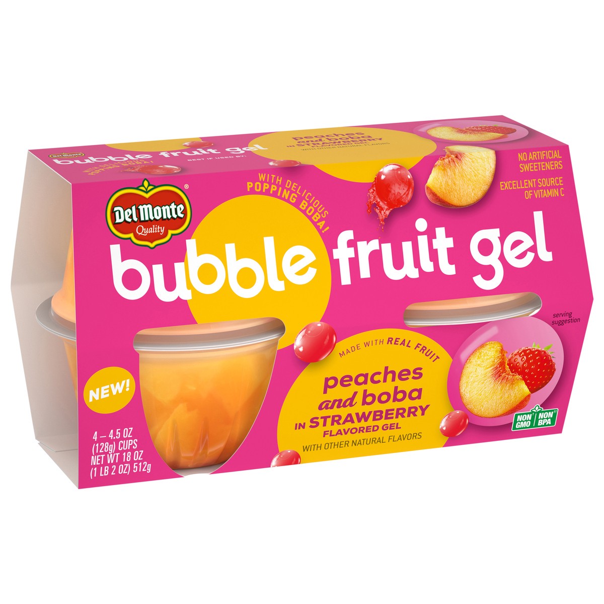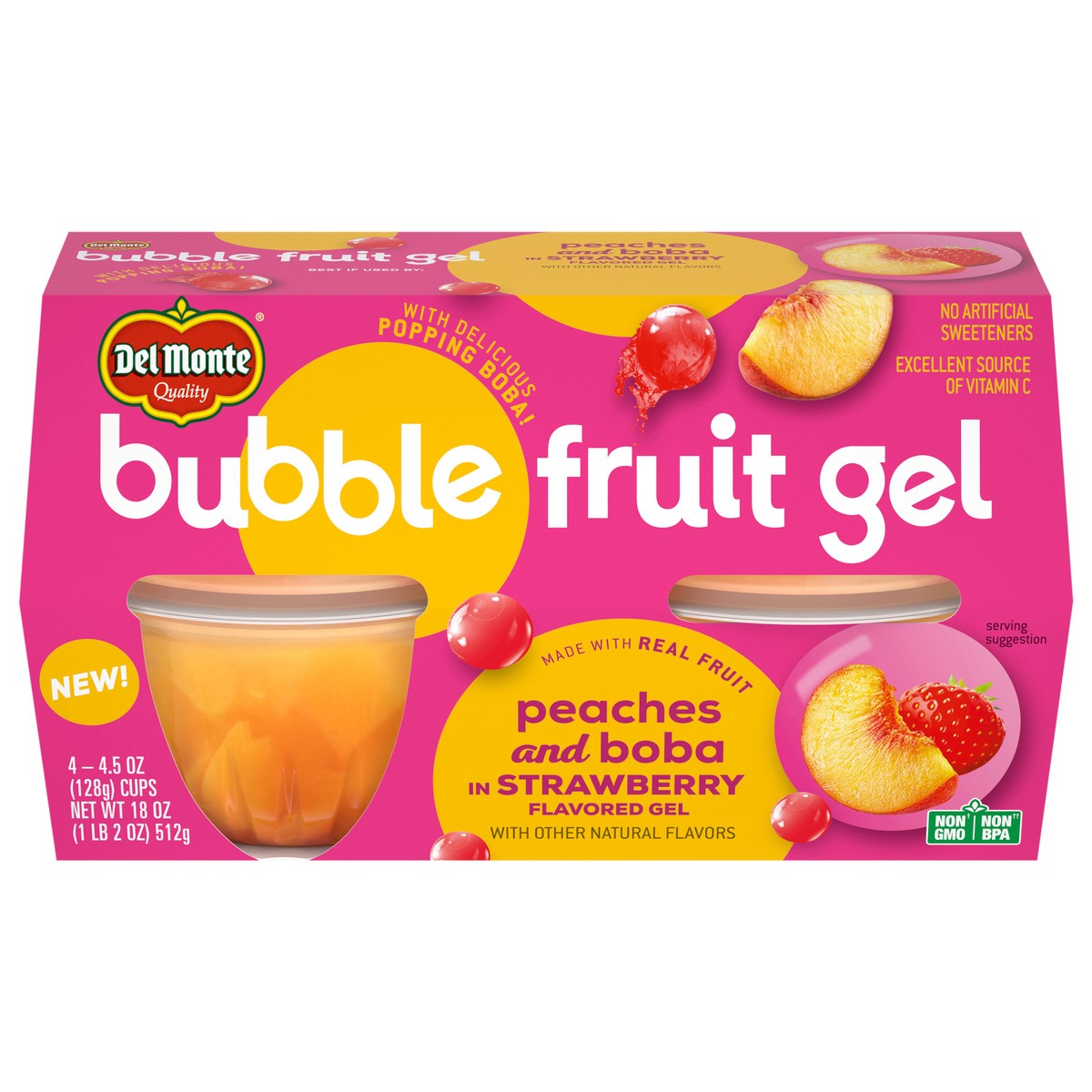 - Del Monte Bubble Fruit Gel has real fruit and popping boba in fruit flavored gel!