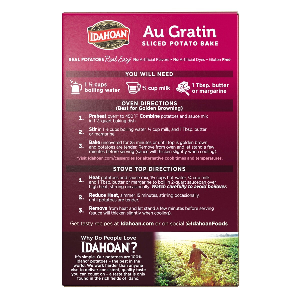 Our delicious and creamy Idahoan Au Gratin Homestyle Casserole potatoes are perfect for family meals or special occasions. Made with 100% real Idaho potatoes, there''s no better way to start a hearty …