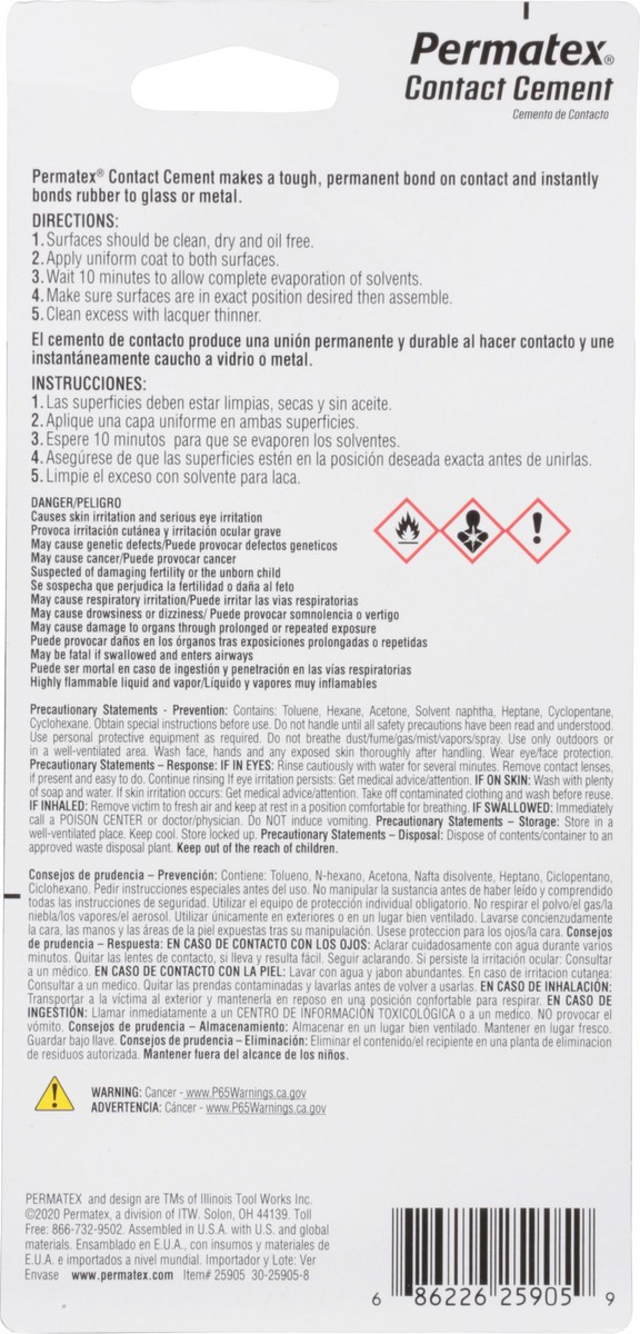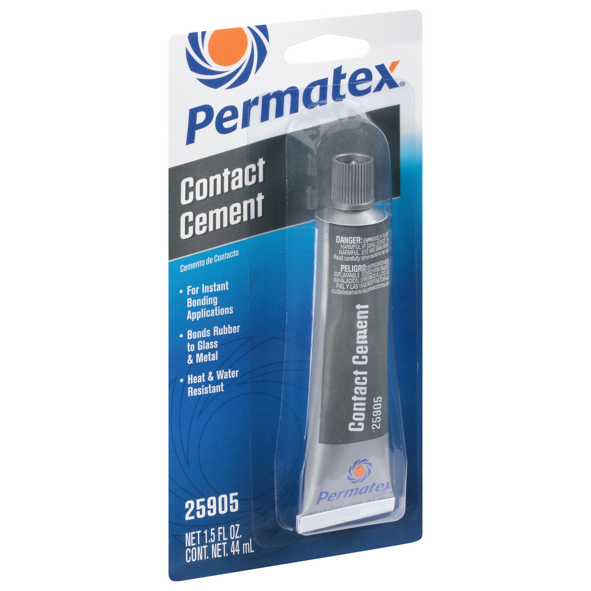 For instant bonding applications. Bonds rubber to glass & metal. Heat & water resistant. Permatex contact cement makes a tough, permanent bond on contact and instantly bonds rubber to glass or metal.