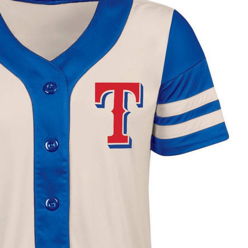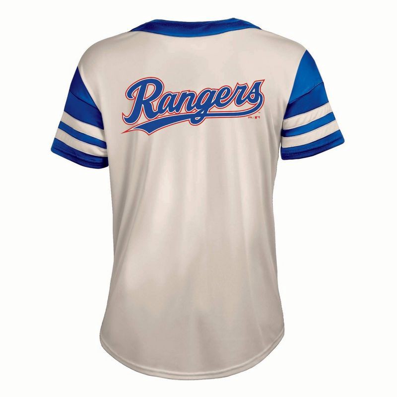Game-day style just got a fun upgrade with this relaxed fit fashion short sleeve button-up tee. Jersey-inspired, the sleeve taping creates an athletic look, while the off-white ground and team color t…