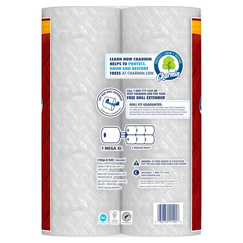 Charmin Ultra Strong Toilet Paper - 8 Mega XL Rolls: No Fragrance Added, Dye-Free, Non-Toxic