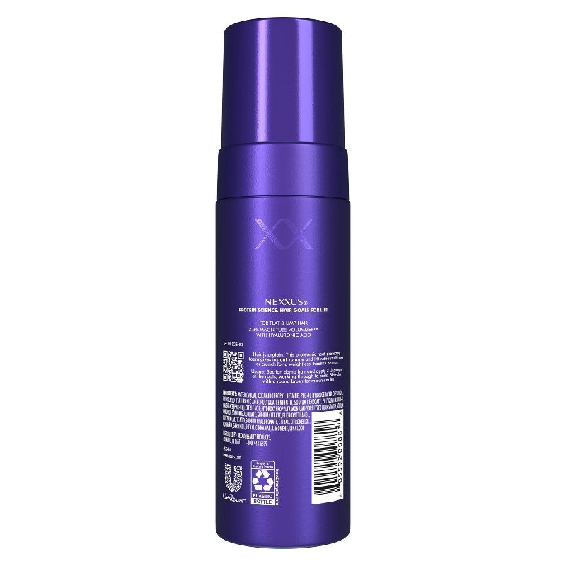 - INSTANT FIBER PLUMPING + SOFT, SHINY, BOUNCY: Visibly thicker strands; flexible hold with healthy movement and no stiffness or crunch with this Nexxus hair foam