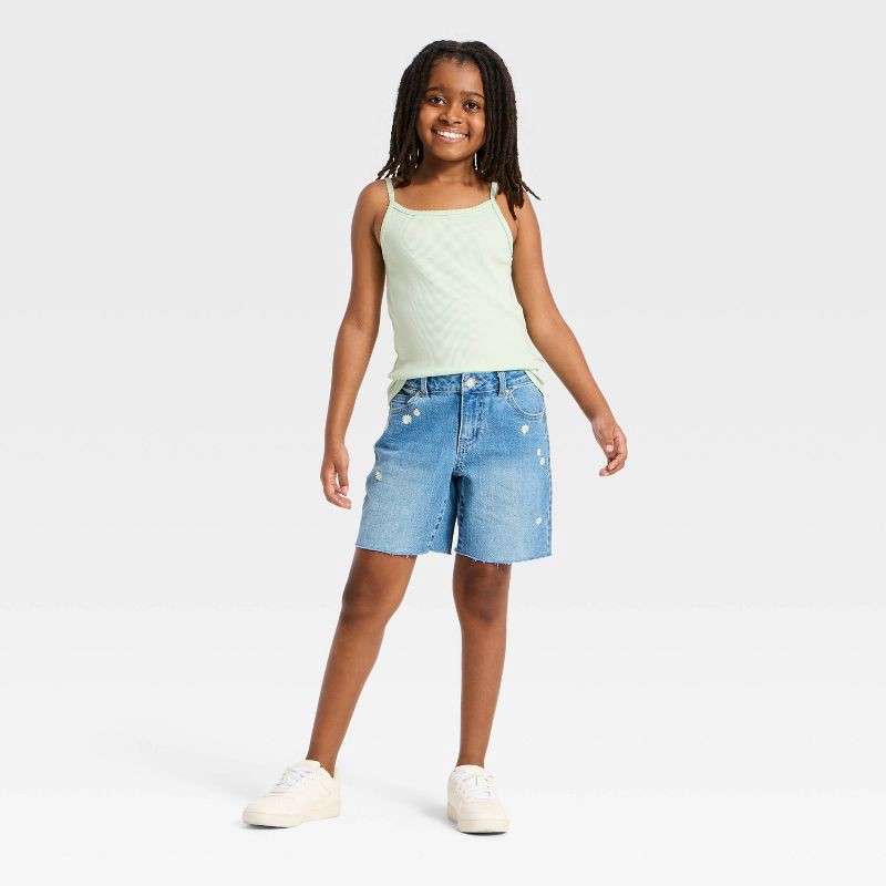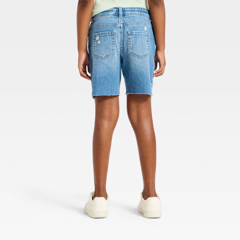 Girls' Mid-Rise Baggy Cutoff Daisy Embroidered Jean Shorts - Cat & Jack™ Medium Wash S