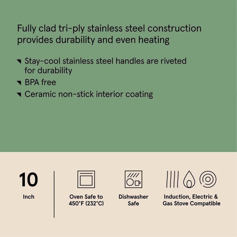 10" Nonstick Stainless Steel Fry Pan Silver - Figmint™: Ceramic Nonstick, 18/0 Stainless Steel, Induction Compatible