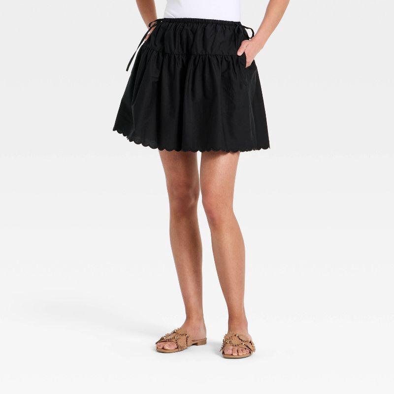 Give your wardrobe a fresh update with this Tie Mini Skirt from A New Day™. Made of 100% cotton, this high-rise skirt offers all-day comfort. It features a scalloped hem for a sweet look and boasts a …