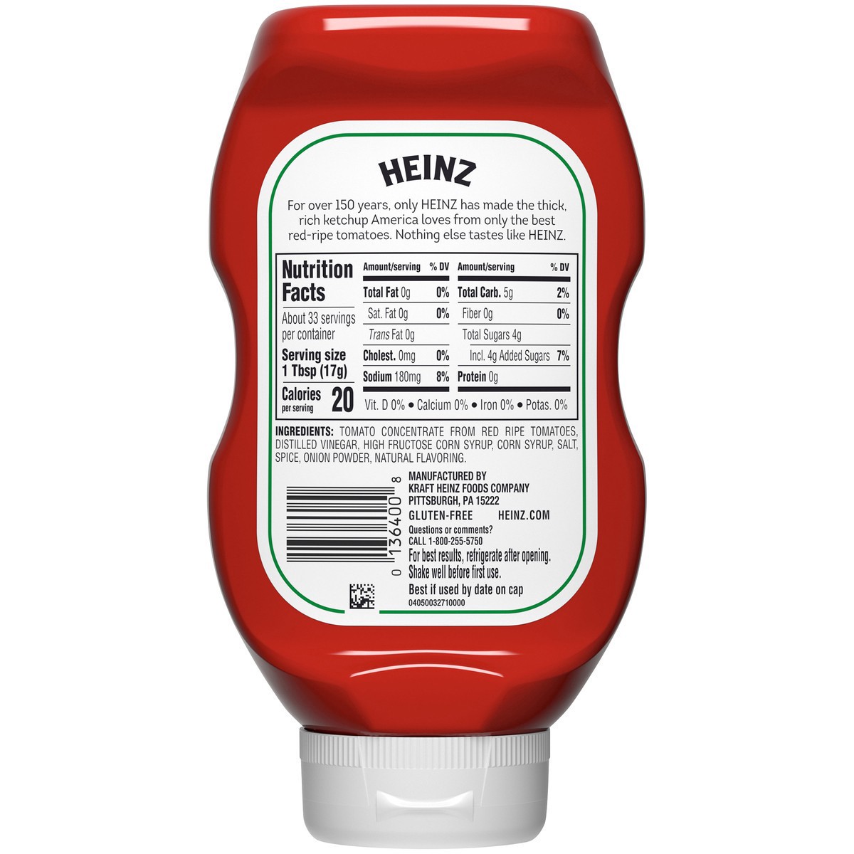 Heinz Tomato Ketchup is made only from sweet\, juicy\, red ripe tomatoes for the signature thick and rich taste of Americas Favorite Ketchup. Did you know that every tomato in every bottle of Heinz Ke…