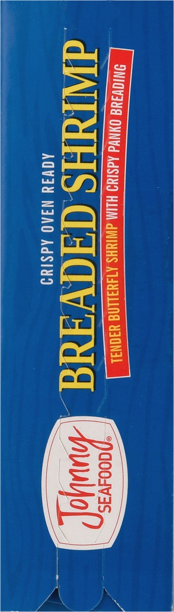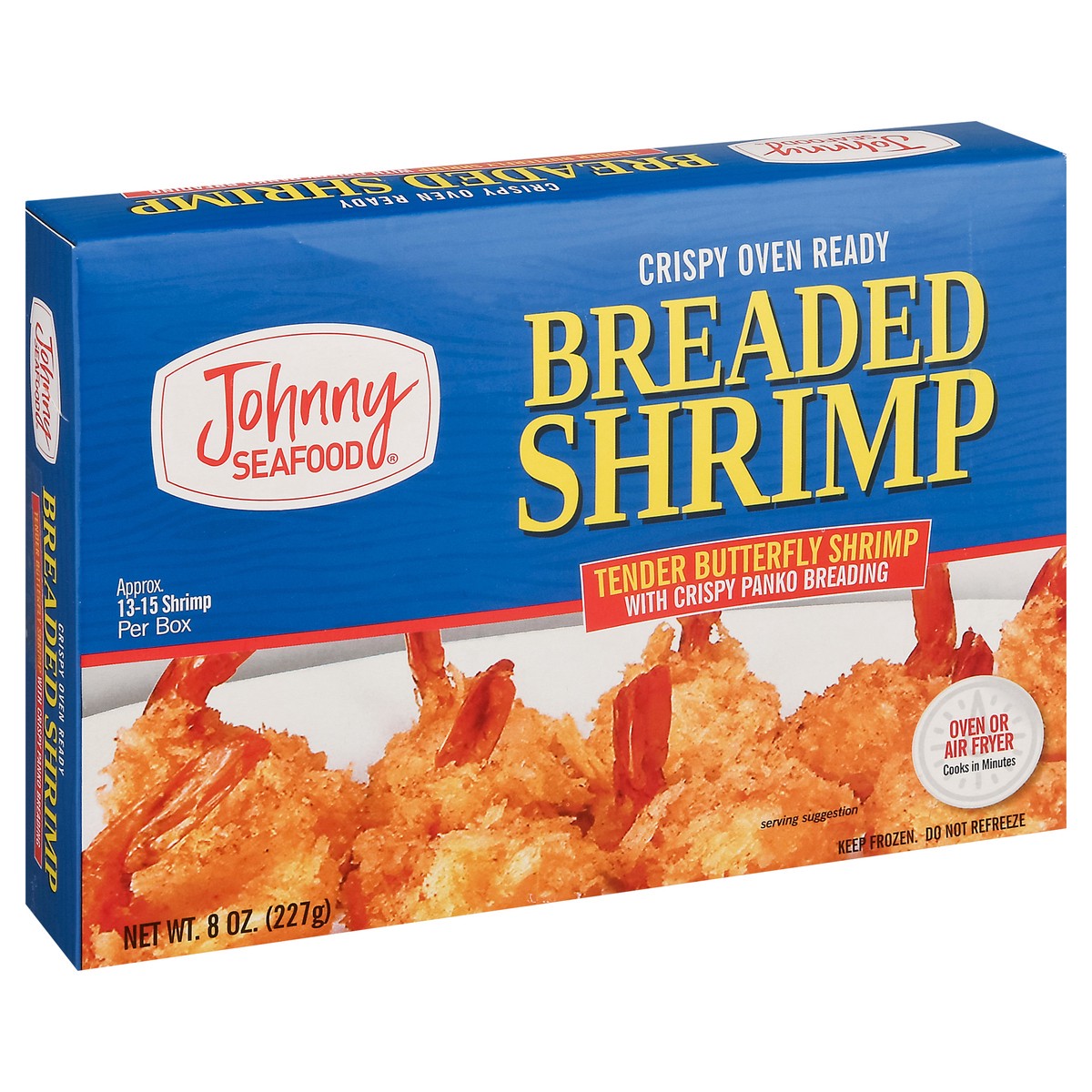 Crispy oven ready. Approx 13-15 shrimp per box. Oven or air fryer. Cooks in minutes. Farm raised. Hi, I'm Johnny Seafood. Thank you for trying our Breaded Shrimp. Our product is made from sustainably …