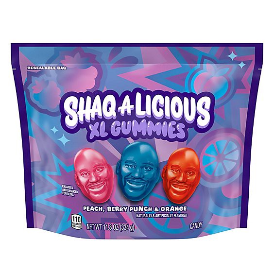 Shaq-A-Licious Gummies Pouch Peach, Orange And Berry Punch Flavors - 11.8 Oz