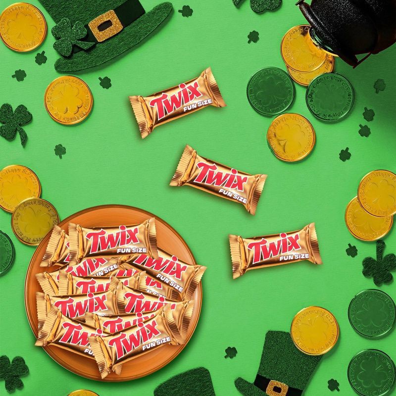That's not gold coins at the end of the rainbow! It TWIX fun size chocolate bars. These classic gold wrapped bars make a great addition to your St Patrick Day celebrations. Not only does a jumbo bag o…