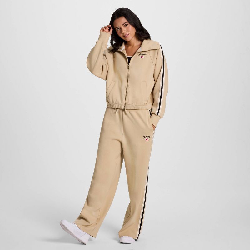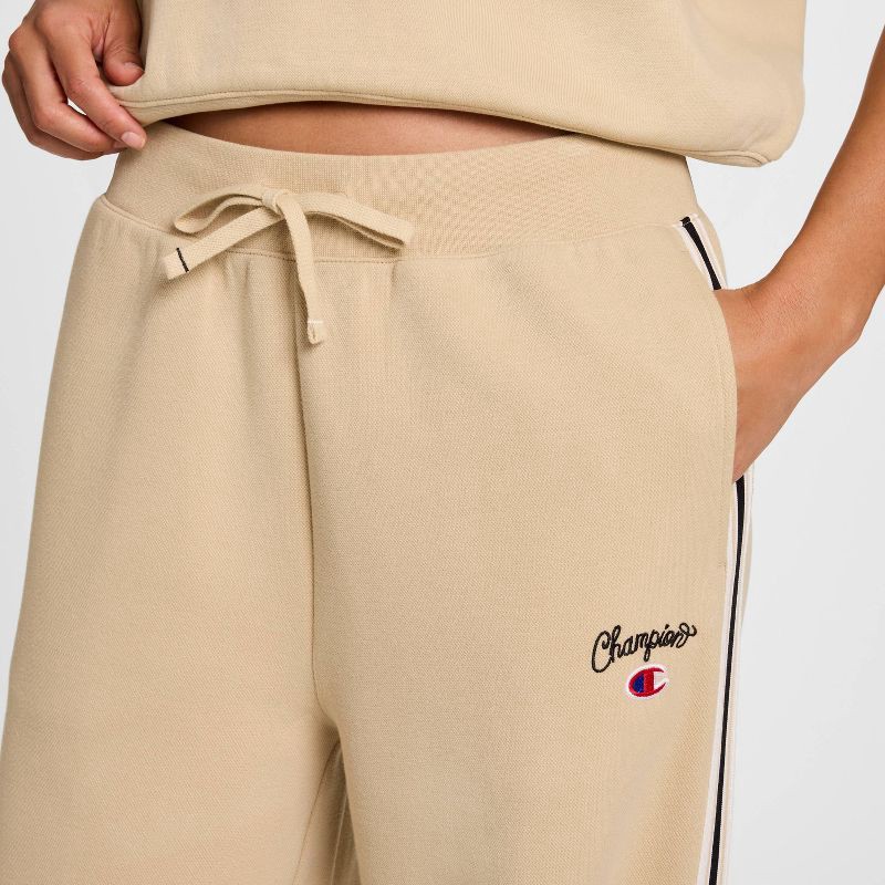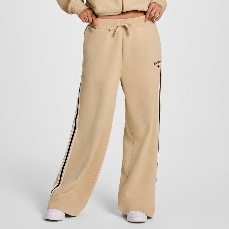 A+ PANTSDesigned in soft, breathable cloud pique fabric, retro details meet modern ease in the women's Champion Scholarship Wide Leg Track Pants. This high-rise silhouette features a wide leg and 23" …