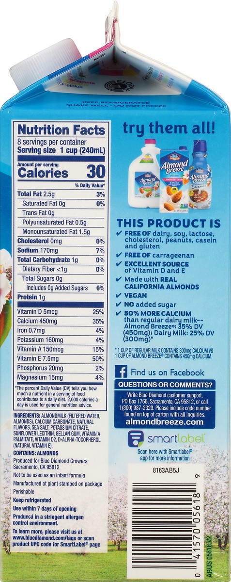 Almond Breeze Unsweetened Vanilla Almond Milk - 64 Oz