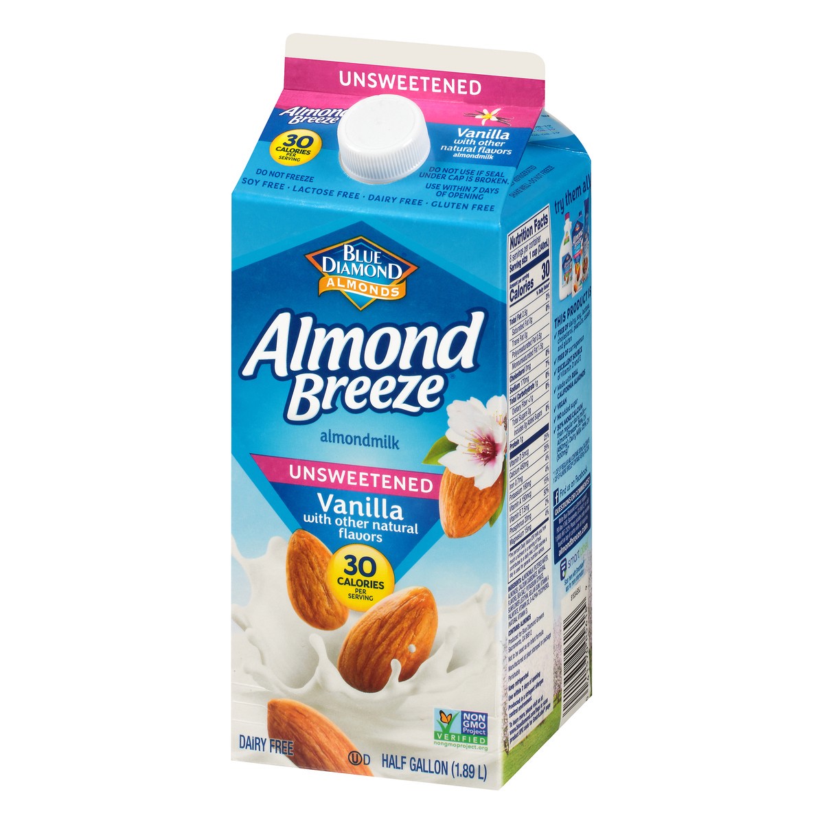 Made with real California almonds. With other natural flavors. 30 calories per serving. 50% more calcium than regular dairy milk Almond Breeze: 35% DV (450 mg; Dairy Milk: 25% DV (300 mg) (1 cup of re…