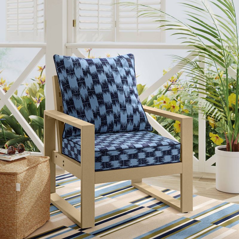 Enhance the comfort of your chair with this 2-Piece Brushstroke Ikat Deep Outdoor Cushions Set from Threshold™. This set includes a seat cushion with foam filling, side ties for easy attachment and a …