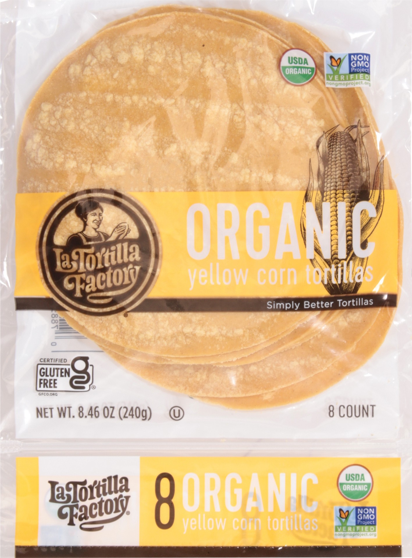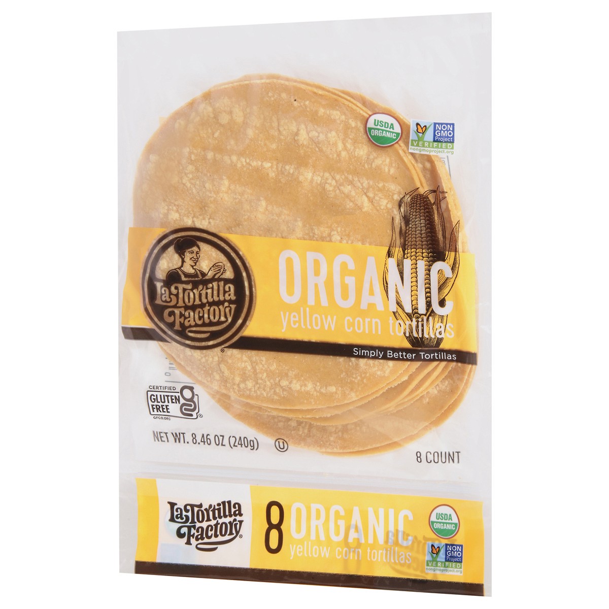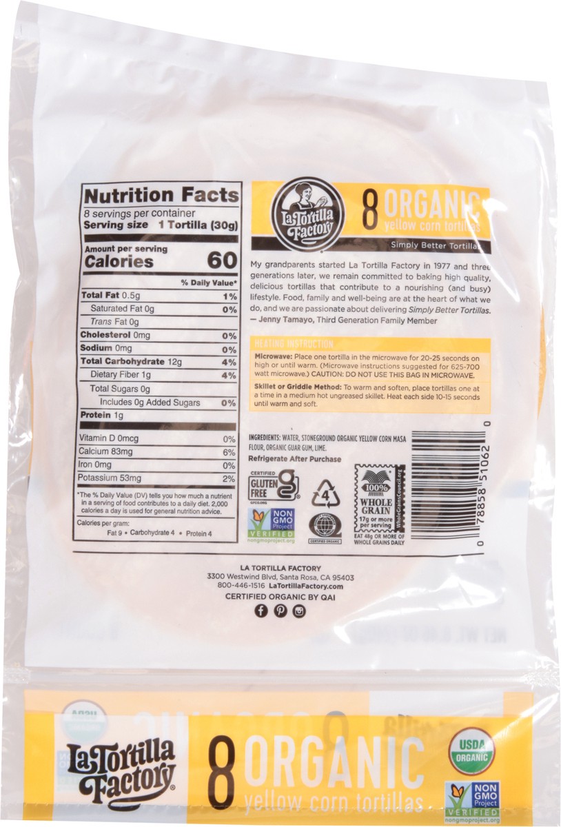 La Tortilla Factory Tortillas Organic Corn Yellow Bag 8 Count - 8.46 Oz