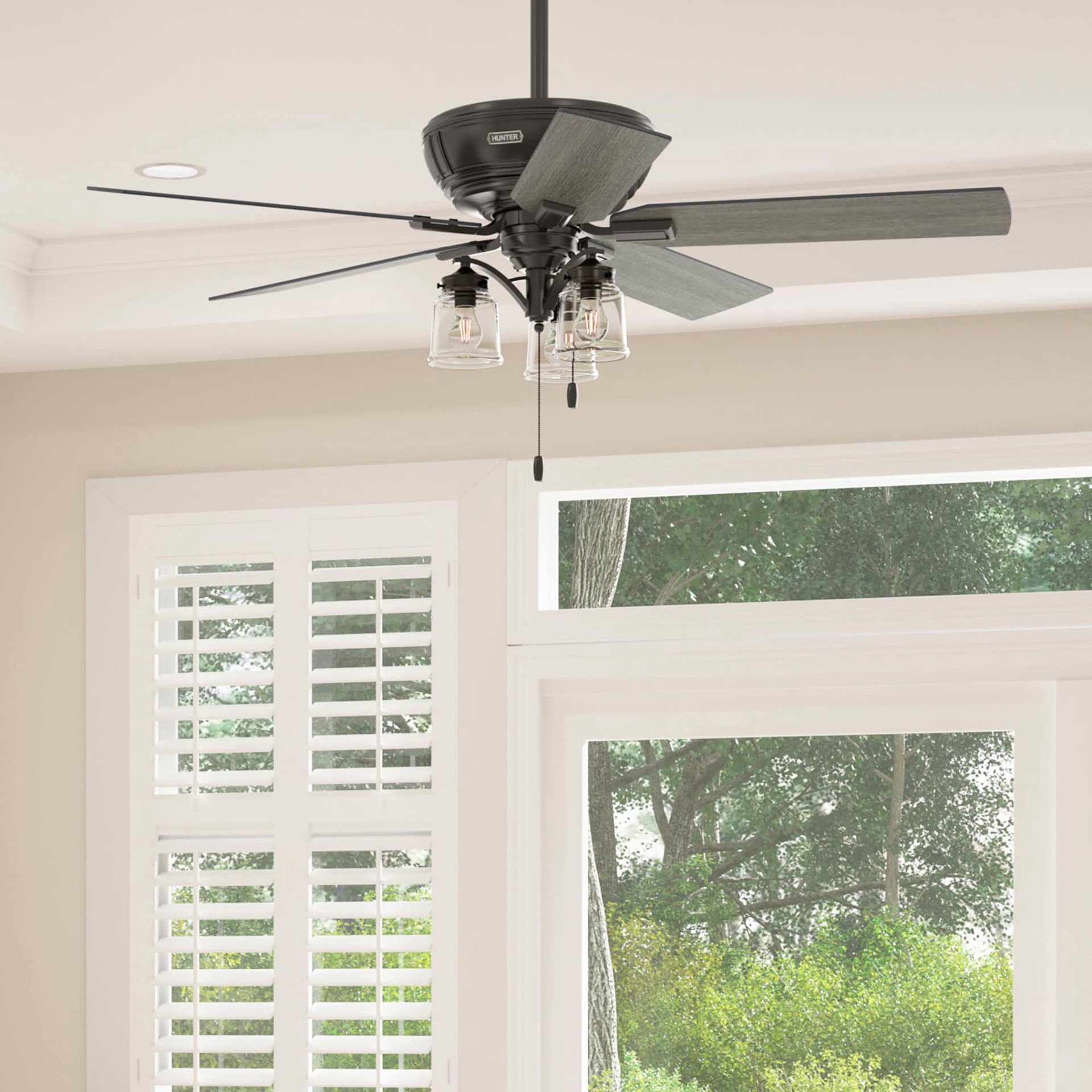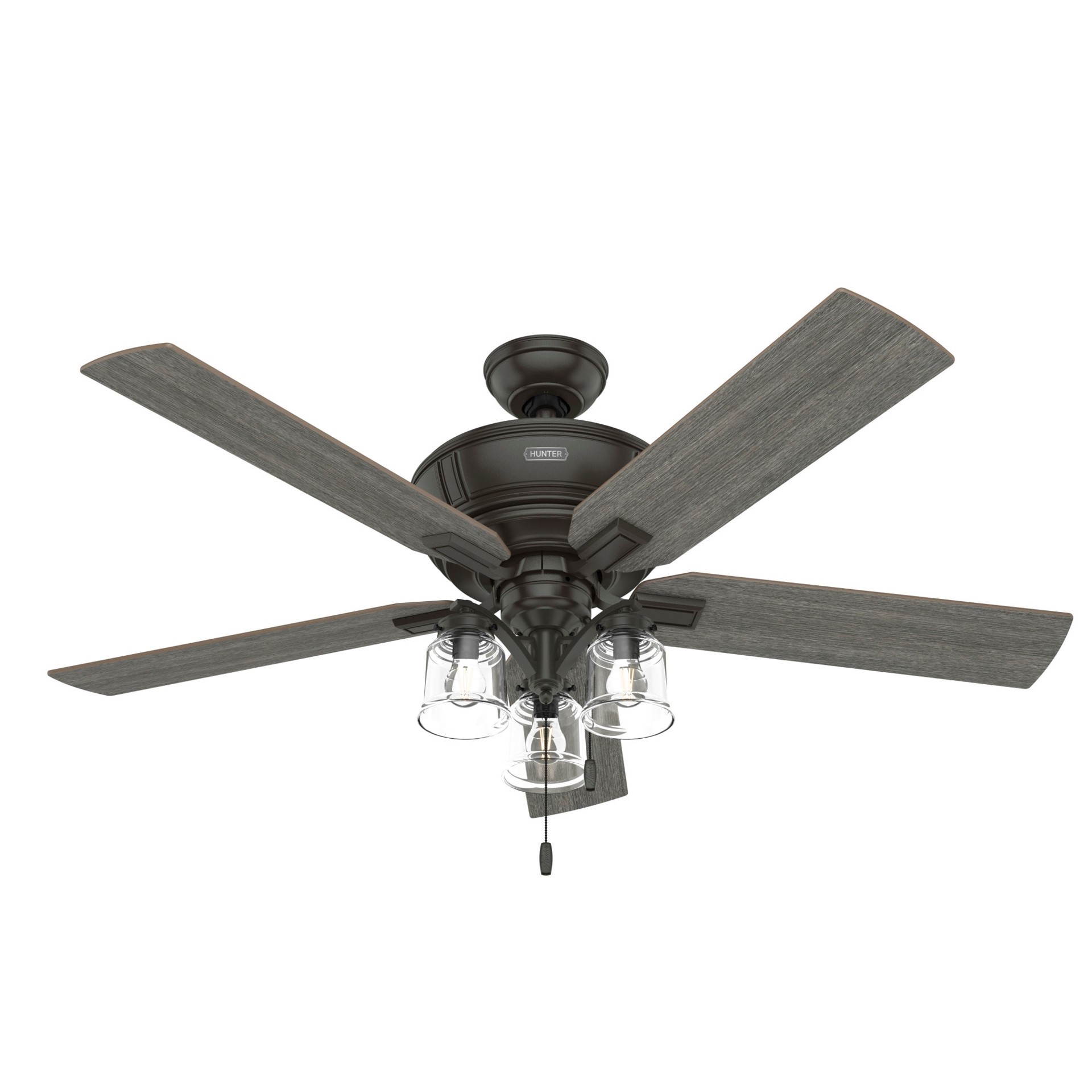 Hunter Maya 54-in Noble Bronze with Dark Gray Oak/Warm Grey Oak Blades Ceiling Fan With Light and Pull Chain Included 5 -Blade