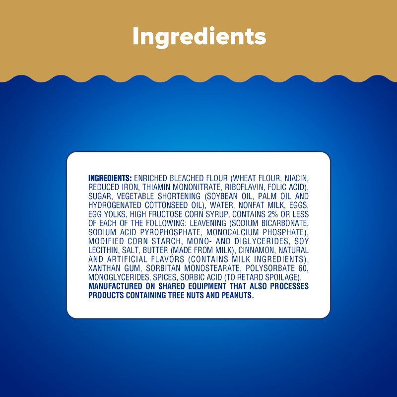 Enriched Bleached Flour (Wheat Flour, Niacin, Reduced Iron, Thiamin Mononitrate, Riboflavin, Folic Acid), Sugar, Vegetable Shortening (Soybean Oil, Palm Oil and Hydrogenated Cottonseed Oil), Water, No…