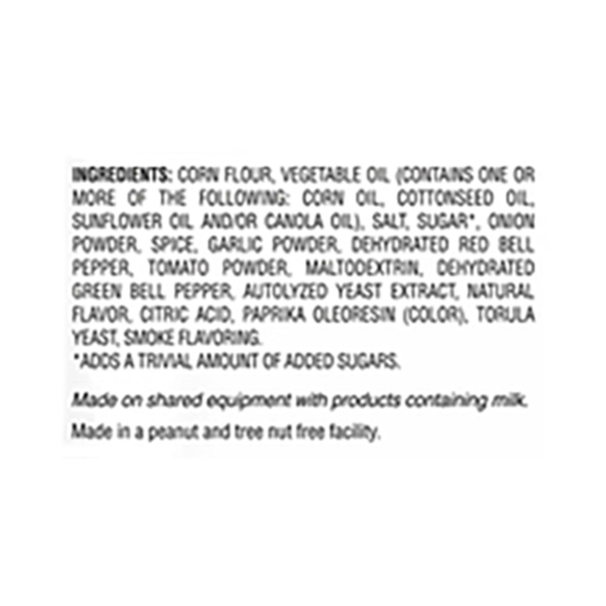 Corn Flour, Vegetable Oil (Contains One or More of the Following: Corn Oil, Cottonseed Oil, Sunflower Oil and/or Canola Oil), Salt, Sugar (Adds a Trivial Amount of Added Sugars), Onion Powder Spice, G…