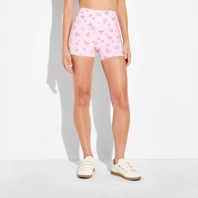 Women's High-Rise ButterBliss Bike Shorts - Wild Fable™ Light Pink Strawberries XXS
