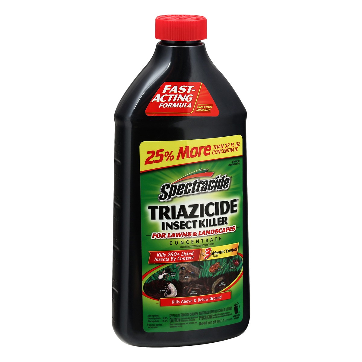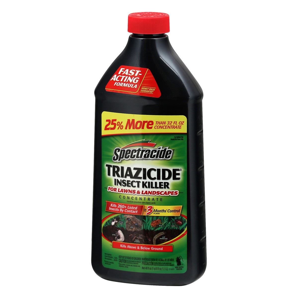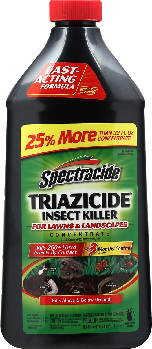 Fast-acting formula. 25% more than 32 fl oz concentrate. For outdoor use around the home only. Kills 260+ listed insects by contact up to 3 months(House crickets, carpenter ants) control of pests. Kil…