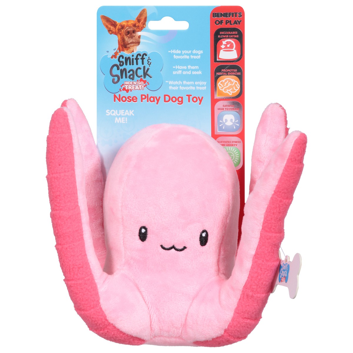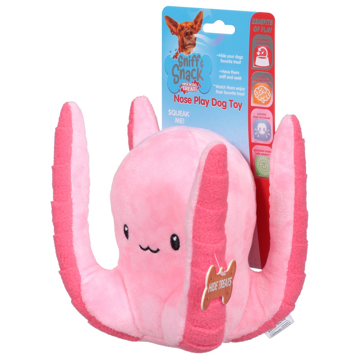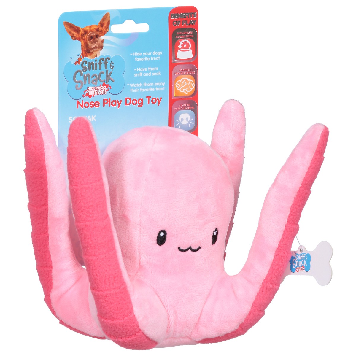 Designed to keep your pets entertained and stimulated the Sniff & Snack Octopus Toy offers a variety of different ways to play. The pockets, loops and flaps offer unique ways to satisfy your pets urgeā¦
