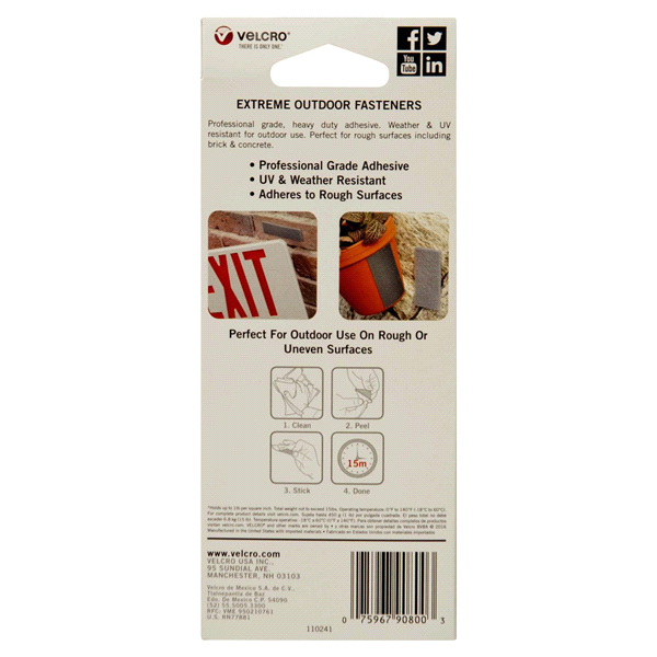 VELCRO Brand Industrial Fasteners Extreme Outdoor Weather Conditions Professional Grade Heavy Duty Strength Holds up to on Rough Surfaces, 4in x 1in, Strips