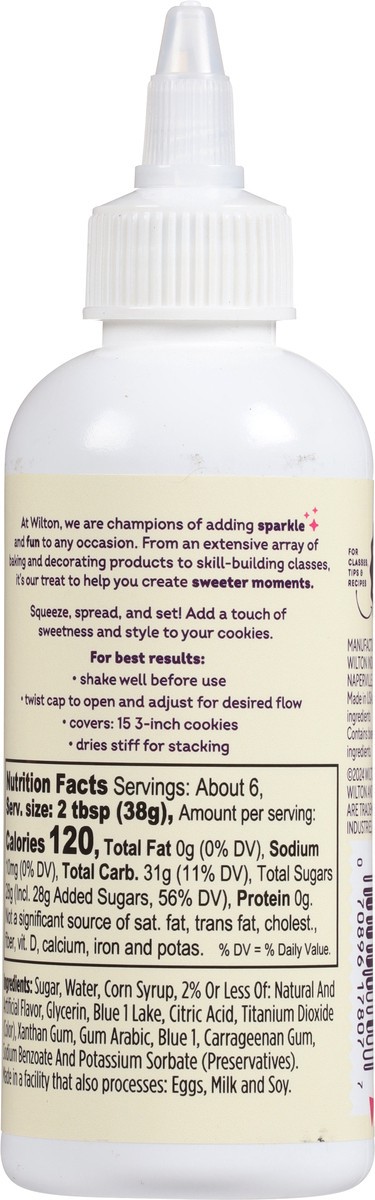 Contains bioengineered food ingredients. Est. 1929. Perfect for outlining + flooding. Ready to use. Dries stiff. No heating. At Wilton, we are champions of adding sparkle + and fun to any occasion. Fr…