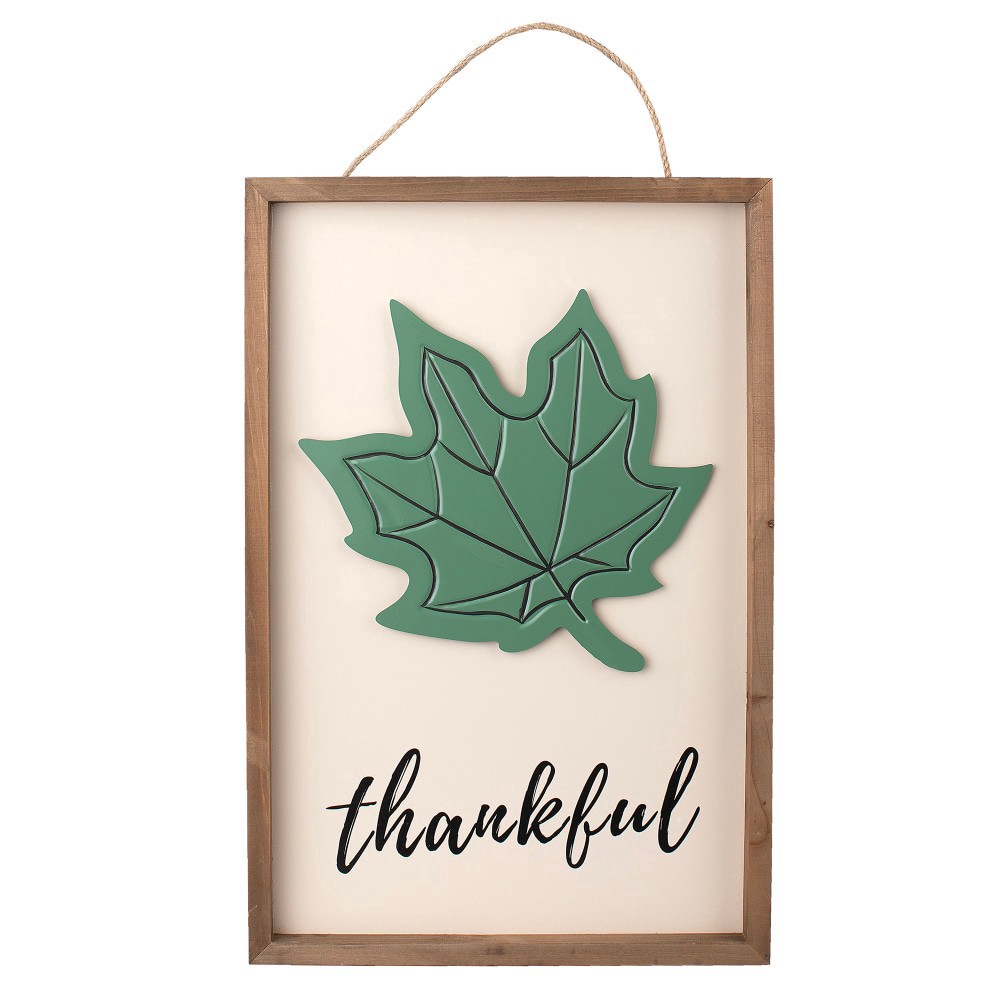 slide 1 of 1, Holiday Home® Thankful Green Leaf Wall Sign, 19 in